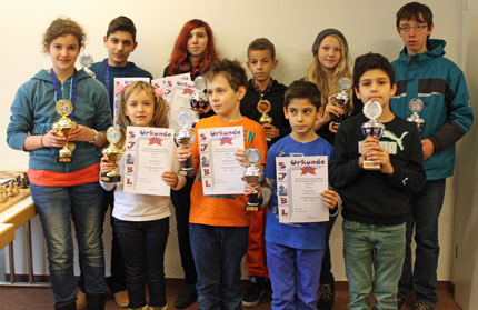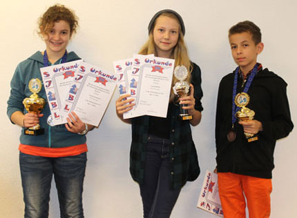 In der U16 hatte Philipp Nguyen einen klassischen Fehlstart mit 1/3 erlebt, gab sich danach aber keine Blöße und qualifizierte sich als Zweiter mit 5/7 für die Niederrheinmeisterschaften. Niklas Nink unterlag in der Schlussrunde gegen Katharina Müller (ESG) und musste mit 3½ Zählern und dem fünften Rang zufrieden sein. Zusammen mit dem punktgleichen Viertplazierten Robert Barche wird er aber ebenfalls an den Verbandsmeisterschaften teilnehmen können. Sven Muschallik (1½) und Bilal Wawi (1) mussten bei ihren ersten Meisterschaften noch Lehrgeld bezahlen, zeigten aber bereits sehr gute Ansätze und werden im kommenden Jahr vielleicht schon weiter vorne landen.