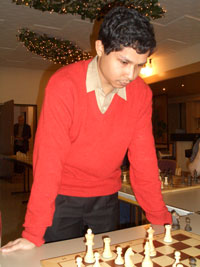 Zum Abschluss seines Deutschland- Aufenthaltes gab unser indischer Bundesliga-Spieler Sandipan Chanda (Elo 2593) noch eine Simultan- Vorstellung im Haus Turnerbund. 20 Spieler hatten sich eingefunden, um den zweifachen Olympia-Teilnehmer herauszufordern. Dabei war die Qualität seiner Gegnerschaft sehr beachtlich: So befanden sich unter den Teilnehmern fast unsere komplette Jugend-Bundesliga-Mannschaft sowie einige NRW-Klasse- und Verbandsligaspieler, die dem 24-jährigen Großmeister das Leben sehr schwer machten, zumal Sandipan nach einem langen Sight-Seeing-Tag ohnehin etwas ermüdet war.