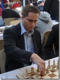 Die unmittelbar vor dem Finale durchgeführte Auslosung ergab ein »Auswärtsspiel«für unser Quartett, so dass wir am ersten und vierten Brett die weißen Steine führten. Demnach entschied das Team, GM Alexander Naumann (Bild links), der nach der Abreise von Markus Schäfer zur Bundesliga-Tagung nach Berlin auch gleichzeitig als Mannschaftsführer fungierte, ans Spitzenbrett zu beordern, um das Heidelberger Spitzenbrett GM Ikonnikov mit Weiß auszubremsen. Doch die Badener hatten ihre Aufstellung im Vergleich zum Vortag leicht modifiziert und ihren Spitzenspieler ebenfalls ans zweite Brett versetzt.