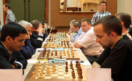 Vorn: GM Harikrishna gegen IM Jörg Wegerle