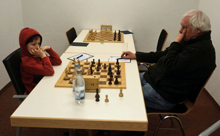Dennoch gab es einige Überraschungen, für die vor allem die traditionell zahlreich vertretenen Jugendlichen im Feld verantwortlich waren. Der 15-jährige Moritz Lückerath (Düsseldorfer SK, 1700) konnte Bernhard Nagel (Wiesbadener SV, 2191) bezwingen, während Julian Gula (12, SF Düsseldorf, 1586) mit Schwarz ein Remis gegen Lokalmatador Joachim Görke erreichte. Ein besonderes Generationenduell gab es am letzten Brett: dort spielte der jüngste Teilnehmer, der 8-jährige Jonas Jahrke aus Essen, der vom bekannten GM Sebastian Siebrecht trainiert wird, gegen den zweitältesten Spieler, im Turnier, Helmut Meckel, unbeeindruckt auf und erzielte ein verdientes Remis.