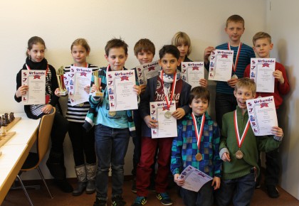 In der U14 sicherte sich Malik Sherif in der Vorschlussrunde durch einen Sieg gegen seine unmittelbare Verfolgerin Laura Möller vorzeitig den Turniersieg und holte sich nach der Vize-Meisterschaft im Vorjahr diesmal mit dem perfekten Ergebnis von 7/7 den 1. Platz. Laura erreichte mit 5½/7 den zweiten Rang und qualifizierte sich als bestes Mädchen für die U14w-Niederrheinmeisterschaft. Dagegen agierte die erst 8jährige Luisa Bashylina gegen ihre viel älteren Gegner ein wenig glücklos und wurde mit 3/7 unter Wert geschlagen. Wolodja Manukjan kam trotz großem Kampfgeist nicht über den 8. Rang hinaus.