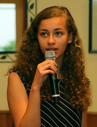 In der kleinen Laudatio hob Redaktionsleiter Guido Radtke, der die Verleihung launig moderierte, den Gewinn der U18w-Afrika-Meisterschaft und das damit verbundene Erreichen des Internationalen Meister-Titels als größten Erfolg in der Saison 2014/15 hervor, vergaß aber auch Aminas exzellente Ergebnisse in der Frauen-Bundesliga, der Herren-Regionalliga und der Jugend-Bundesliga nicht. Fast noch mehr Eindruck beim Moderator und dem Publikum konnte Amina im Rahmen des Sieger-Interviews allerdings mit dem Thema ihrer Facharbeit machen, für die sie am Vortag in der Heinrich-Heine-Universität Düsseldorf im Rahmen eines Mathematik-Wettbewerbs für Schüler mit dem 2.Preis ausgezeichnet worden war.