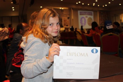 Elizabeth, die während des Turniers von ihrem Vater Vladislav Kublanov schachlich betreut wurde, brauchte dagegen einige Zeit, um sich an das andere Niveau bei einer Weltmeisterschaft zu gewöhnen und musste ihrer fehlenden internationalen Erfahrung Tribut zollen. Viele Kinder ohne hinreichende Turniermöglichkeiten in ihren Heimatländern sind deutlich unterbewertet. Wenn dann auch noch schlechte Form wie im Falle von Elizabeth hinzukommt, kann schnell ein Zwischenresultat von 1½/7 auf der Ergebnisliste erscheinen.