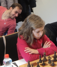 Diese Partie fügte sich nahtlos in den heutigen »Familientag« ein, denn bereits am Vormittag hatte sich der Langenfelder Tayfun Ipekyilmaz mit seinem Sohn Mert Ipekyilmaz duellieren müssen, wobei es hier zu einem friedlichen Remisausgang gekommen war. Aus einer echten Schach-Familie stammt auch die 9-jährige Luisa Bashylina, die erstmals zusammen mit ihrem Bruder Seva Bashylin an einem Open teilnimmt und diesem seinen Platz in der familiären Rangordnung streitig macht. Heute remisierte die amtierende U10-NRW-Meisterin zunächst gegen Stefan Gutt (Bergisch-Gladbach, 1950) und besiegte anschließend Tayfun Ipekyilmaz (1771), so dass sie mit 1½/3 einen halben Zähler mehr als ihr Bruder aufweist!