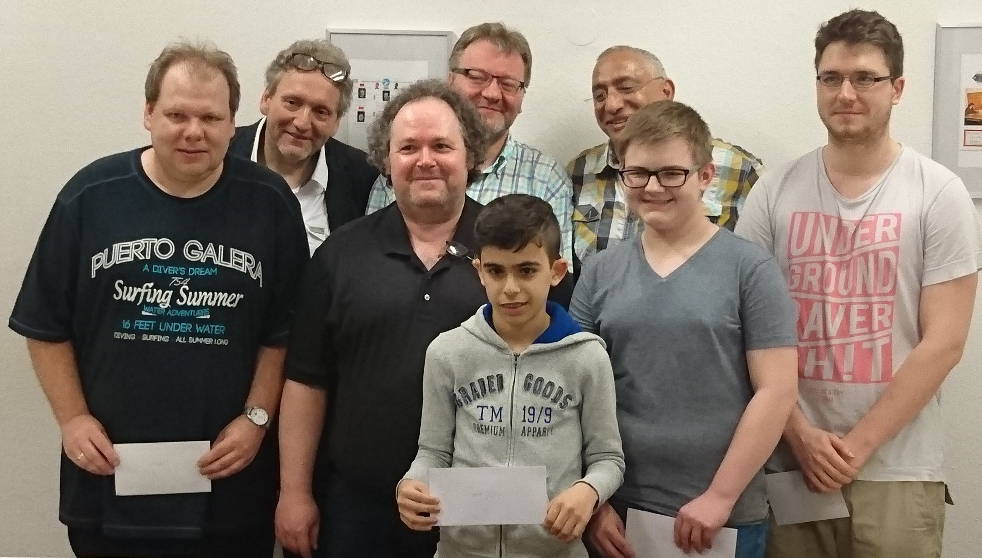Zum Abschluss der Jugendsaison konnte unser Blitzquartett bei den am 26.06.2016 durchgeführten NRW-Blitz-Mannschaftsmeisterschaften noch einmal einen tollen Erfolg verbuchen. Nach zwei Bronzemedaillen in den vergangenen Jahren erreichte die Mannschaft mit 35:05 Zählern (nach traditioneller Zählweise) im Feld der 21 Mannschaften einen exzellenten zweiten Platz und blieb am Ende nur einen Mannschaftspunkt hinter der SG Porz (36:04), die ihren Vorjahrestitel erfolgreich verteidigte. Damit sicherte sich unsere Mannschaft in der Besetzung Jan Hobusch, Kevin Zolfagharian, Amina Sherif und Niklas Nink die erneute Vorberechtigung für die NRW-Titelkämpfe im kommenden Jahr. Jugend-Blitz-Team holt NRW-Silber weiterlesen