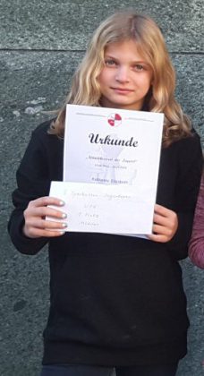Damit sicherte sie sich als letzte unseres talentierten Mädchen-Kaders das Ticket zu den NRW-Meisterschaften in den Osterferien, für die Amina Sherif, Melanie Müdder, Dana Berelowitsch, Luisa Bashylina und ihre Schwester Carolin bereits vorberechtigt sind.