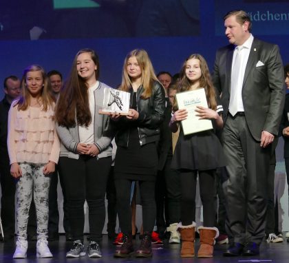 Bei der traditionellen Solinger Sport-Gala, die am 11.02.2017 im Konzertsaal des Stadt-Theaters stattfand, wurden auch zahlreiche SG-Akteure für die tollen Erfolge im Jahr 2016 geehrt. So zeichnete Oberbürgermeister Tim Kurzbach unser Bundesliga-Team und die U14-Mädchen-Mannschaft für ihre deutschen Meistertitel aus.