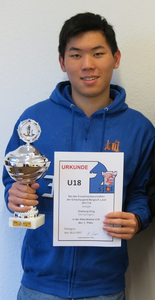 In der U18 kam es in der Schlussrunde zu einem echten Endspiel um den Titel. Malik Sherif ging mit 2½/3 in die letzte Runde und traf mit Weiß auf den verlustpunktfreien Zheheng Ding. Doch die Partie war unerwartet schnell beendet. In der Eröffnung nahm der sonst so grundsolide Malik einen vergifteten Bauern und musste bereits nach 12 Zügen mit Weiß die Waffen strecken. Somit durfte der mit einer Jugendspielberechtigung für uns ausgestattete Zheheng sich über seinen ersten Bezirks-Titel freuen, während Malik noch einen Stichkampf um den zweiten Qualifikationsplatz mit dem punkt- und wertungsgleichen Sören Matthey (Tornado Wuppertal) absolvieren musste. Nach zwei Remisen in den 10+5-Partien, siegte Malik in der ersten 4+2-Blitzpartie, kassierte dann aber den erneuten Ausgleich. In der entscheidenden Armageddon-Partie musste er mit Weiß gewinnen, konnte aber seine Vorteile nicht nutzen und landete auf einem für ihn sicherlich enttäuschenden dritten Platz. Drei Bezirks-Titel für SG-Jugend weiterlesen