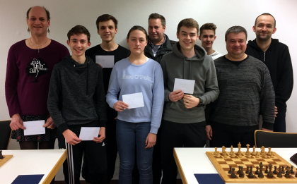 Zudem durften sich mit dem 18-jährigen Simon Knudsen (SF Brackel) und dem 14-jährigen Ilya Gutkin (ESK Wedau) zwei weitere Teenager über Ratingpreise freuen, da sie in den Kategorien für TWZ unter 2150 und 1950 mit jeweils 3½/5 knapp nach Buchholz die Nase vorn hatten. Beste Dame wurde die 14-jährige Kirsten Bünte (Rhedaer SV), die sich mit einem hart erkämpften Remis in der Schlussrunde den Sonderpreis in der Ratinggruppe unter 1550 mit 2½ Zählern sicherte. Schließlich freute sich Detlev Reinacher (Hansa Dortmund) , dass er nach zwei Siegen am Schlusstag mit 3/5 als Stammgast unseres Turniers nun erstmals einen Preis in der dritten Ratinggruppe mitnehmen konnte.