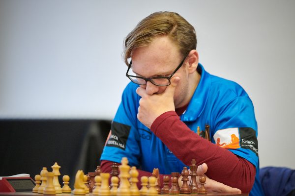 Kurze Zeit später konnte der aktuell in bestechender Form aufspielende Mads Andersen die Führung ausbauen. In einer Damengambit-Abtauschvariante konnte er mit Schwarz gegen IM Dr. Günther Beikert (2399) ausgleichen und sammelte in der Folge kleine Vorteile an, die letztlich zum entscheidenden Verlust von zwei weißen Bauern führten. Damit schraubte Mads seinen Saisonscore auf 5½/6.