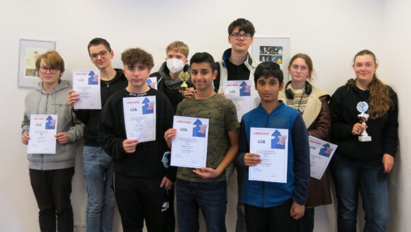 Traditionell fanden im September und Oktober 2022 die Jugend-Bezirkseinzelmeisterschaften im Solinger Schachzentrum statt. Mit 19 Spielerinnen und Spielern stellte unsere Schachjugend diesmal sogar mehr als die Hälfte der insgesamt 37 Teilnehmerinnen und Teilnehmer. Dabei konnten sich mit Maida Fetahovic (U14w), Batuhan Gülcan (U14), Janis Meijers (U12) und Siddharth Shivkumar (U10) gleich vier unserer Talente über einen Bezirksmeistertitel freuen.