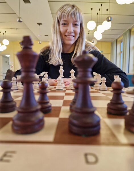 Doch Machteld zeigte gute Technik und starke Nerven. Nach der Zeitkontrolle hatte sie in ein Springerendspiel mit fünf gegen vier Bauern abgewickelt, das sie dann auch gegen die sich zäh verteidigende Sarah nach 79 Zügen zum umjubelten Sieg umwandelte. Damit rundete sie unser perfektes Wochenende ab, das uns dem Klassenerhalt schon ganz nah bringt.