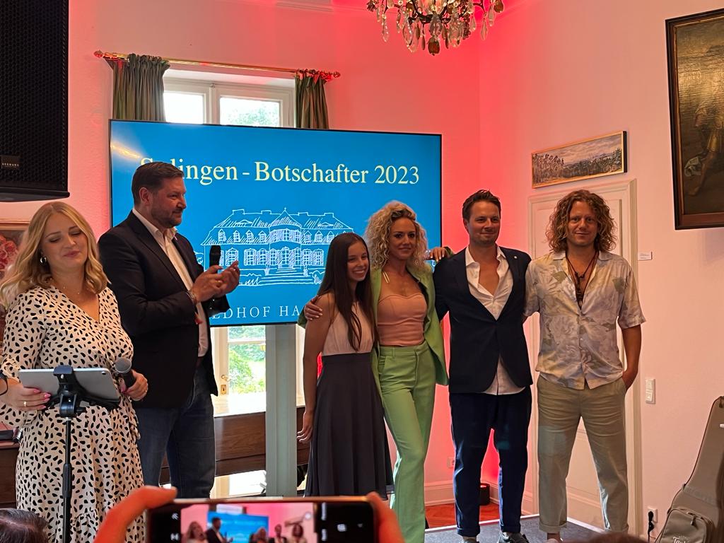 Sarah sollte ursprünglich bereits im Jahre 2020 ernannt werden, doch die Pandemie und ihre Nachwirkungen sorgte für eine insgesamt dreijährige Verzögerung, bis die neuen BotschafterInnen der Klingenstadt vorgestellt wurden. Für diese lange Wartezeit wurden Sarah und ihre Familie aber mit einer liebevoll gestalteten und von Luisa Skabric moderierten Feier im schönen Ambiente des Waldhof Hackhausen entschädigt.