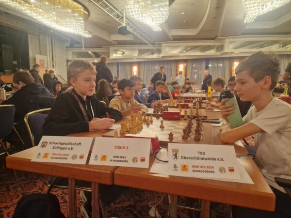 Ewald feierte ein hervorragendes Debüt als Trainer auf nationaler Ebene, nachdem er die U12 erstmals bei der NRW-Endrunde betreut hatte. Während die Jungs dadurch schachlich bestens eingestellt in ihre Partien gehen konnten, übernahmen Subhashini Ramanathan, die neben Shreyas auch die anderen Jungs bereits vorbildlich bei den NRW-Meisterschaften betreut hatte, und Marcel Schulte die mindestens genauso anspruchsvolle Aufgabe, für genügend Schlaf und Entspannung zwischen den Runden zu sorgen. Wer unsere U12-Talente einmal live erlebt hat, weiß genau, dass die dort vorhandene Energie scheinbar auch zu bereits sehr später Stunde kaum nachzulassen scheint…