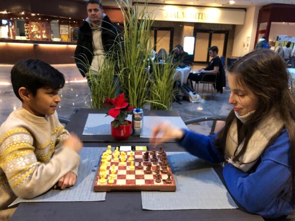 Leider lief das Match dann nicht wunschgemäß: Shreyas Shivkumar erreichte mit Schwarz gegen Khoi Nguyen Vu (1599) sehr bequemen Ausgleich, ließ sich dann aber zu einem impulsiven Zocker-Zug hinreißen, den der Berliner mit einem starken Bauerndurchbruch im Zentrum mustergültig bestrafte und sich bereits drei Züge später über den Sieg freuen konnte.