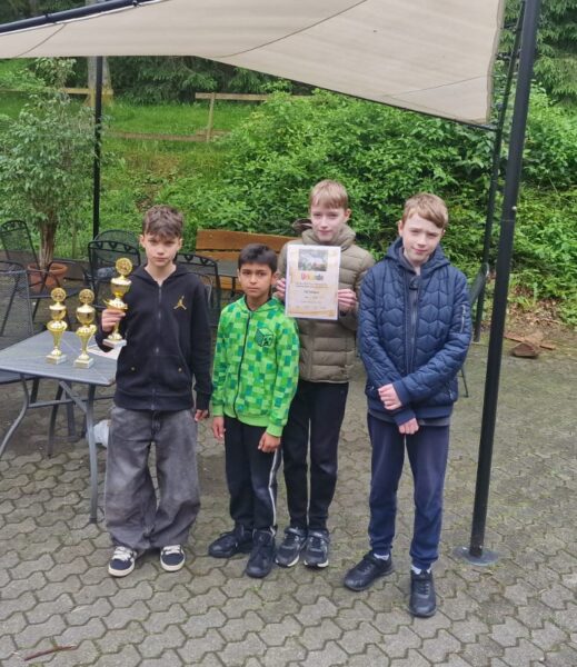 Doch der 12jährige behielt die Nerven und sicherte nach über vier Stunden Spielzeit den umjubelten Siegpunkt zum 8:8 (2:2)-Unentschieden. Dieser dritte Platz ist ein wirklich toller Erfolg für unsere U14-Mannschaft, zumal nicht vergessen werden sollte, dass Janis und Jaroslav noch in der U12 und Shreyas sogar in der U10 spielberechtigt sind.
