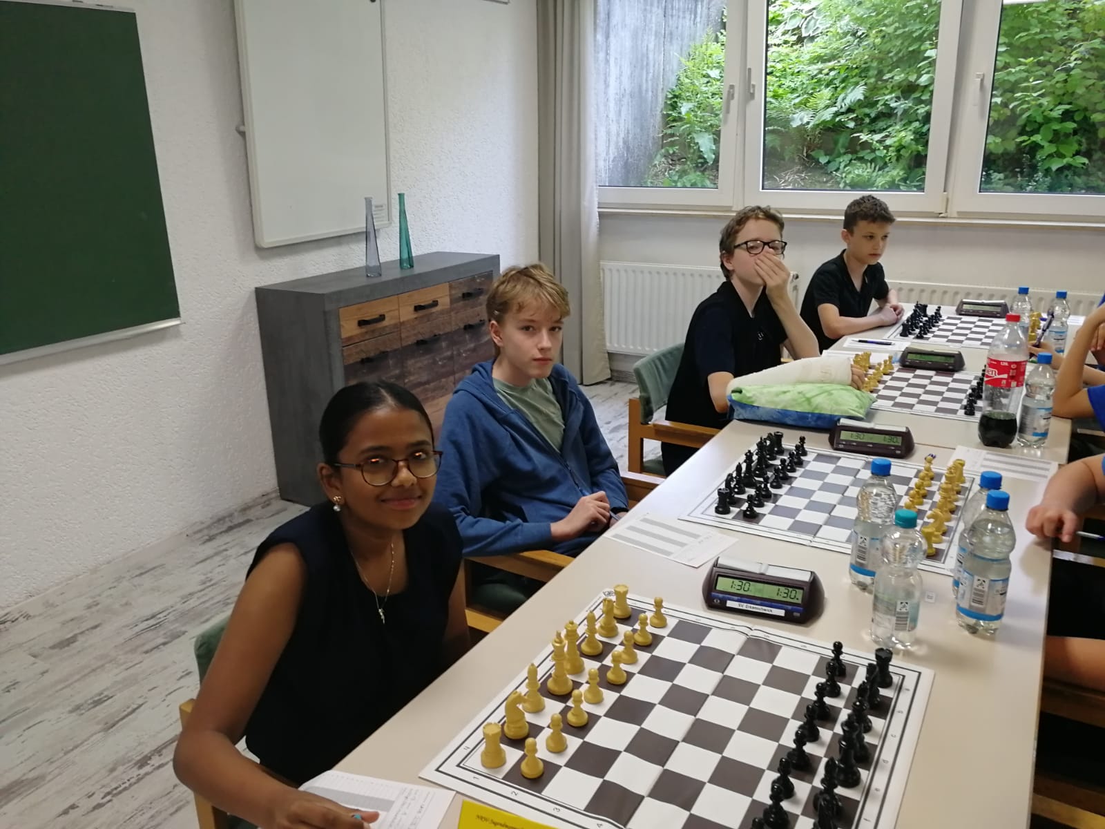 Für die heutige dritte und vierte Runde kam Diya Dhanasekaran Meenambigai ins Team, um die Mannschaft zu unterstützen und Dimitrij zu ersetzen, der heute noch ein wichtiges Fußballspiel für seinen Verein zu bestreiten hatte. Am Vormittag spielte unsere U14 mit neuer Besetzung am vierten Brett gegen den Rhedaer SV. Den ersten Punkt holte Jaroslav Meijers, der durch einen frühen Qualitätsgewinn schnell zum Sieg gegen Conrad Florian Schröder (1537) kam. Dima Kovalyov sicherte sich nach vielen Abtauschen auf dem Brett gegen Alexander Döding (1627) ein Remis, sodass wir mit 1½:½ vorne lagen. Janis tat es seinem Bruder gleich und markierte mit seinem Punkt gegen Timon Liam Weiner (1627) den Sieg in der dritten Runde. Diya erspielte sich in einer schönen positionellen Partie gegen Luis Wittreck (1168) einen Vorteil, den sie leider nicht verwerten konnte, jedoch mit einem Remis das Ergebnis auf 10:6 (3:1) abrundete.