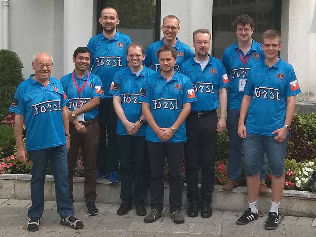 Gruppenbild mit Captain: Markus Ragger, Erwin L’Ami, Sandipan Chanda, Alexander Naumann, Mads Andersen, Jörg Wegerle (v.r.n.l.) und Markus Schäfer (stehend)